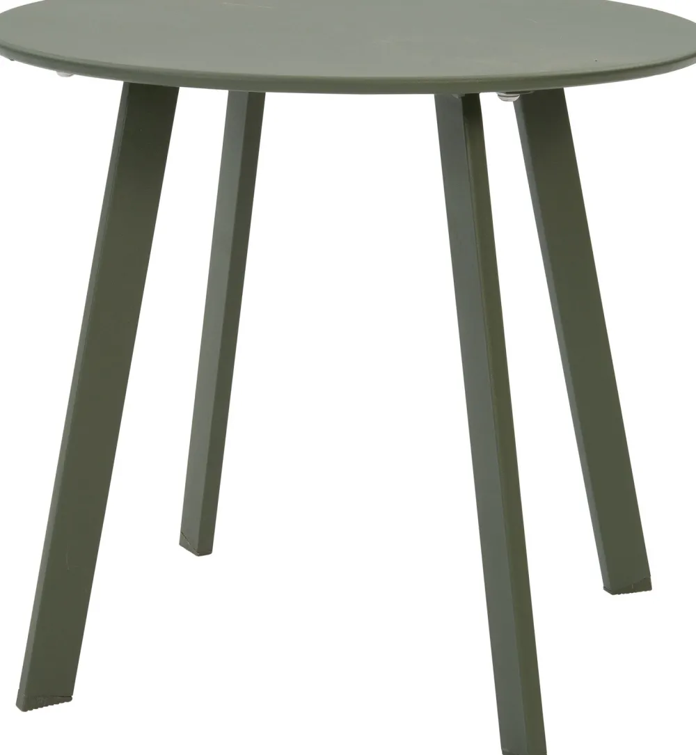 Der Beistelltisch Latte in Armeegrün ist rund und hat die Maße Ø 50 H 45 cm. Der Beistelltisch ist in unterschiedlichen Größen und Farben erhältlich. 2 Jahre Garantie.