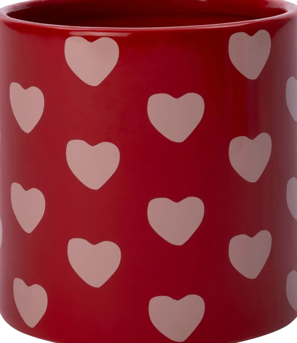 Bringe einen Hauch von Liebe in dein Interieur mit diesem charmanten Blumentopf! Dieser Blumentopf aus hochwertiger Keramik kombiniert Nachhaltigkeit mit einem verspielten Design. Die tiefroten Herzmotive verleihen jedem Raum eine warme, romantische Atmosphäre. Mit einem Durchmesser von 14 cm und einer Höhe von 13 cm ist er perfekt für kleine Pflanzen oder Kräuter. Stell ihn auf eine Fensterbank, einen Tisch oder ein Regal, um deine Lieblingspflanzen stilvoll zu präsentieren. Dieser Blumentopf ist nicht nur praktisch, sondern auch ein echter Blickfang, der jedes Interieur bereichert. Eine tolle Geschenkidee für Pflanzenliebhaber!