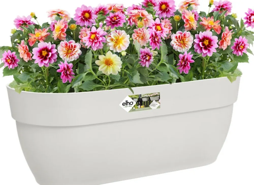 Dieser weiße Vibia-Balkonkasten aus der Elho-Kollektion ist eine echte Bereicherung für deinen Balkon. Der aus recyceltem Kunststoff hergestellte Balkonkasten hat eine rechteckige Form, ist sehr stilvoll und eignet sich hervorragend für mehrere Pflanzen. Noch nie hat das Gärtnern auf dem Balkon so viel Spaß gemacht und die Auswahl war so groß! Die Maße dieses Modells sind 46 x 24,1 x 26,5 cm. Außerdem ist dieses Modell in verschiedenen anderen Größen und Farben erhältlich.