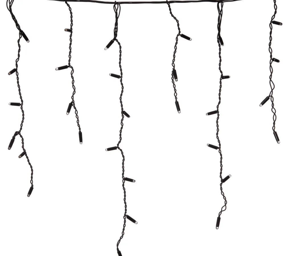 Ein Lichtervorhang für die Feiertage, ideal zum Aufhängen an der Dachrinne oder an der Wand. Mit dem 5 m langen Verlängerungskabel kannst du diese Weihnachtsdekoration aufhängen, wo immer du willst. Der Lichtervorhang besteht aus 40 Strängen mit 200 daran befestigten LED-Lichtern, die ein goldfarbenes warmes Licht ausstrahlen. Die Breite des beleuchteten Vorhangs beträgt 70 cm und die Länge der Stränge 500 cm.