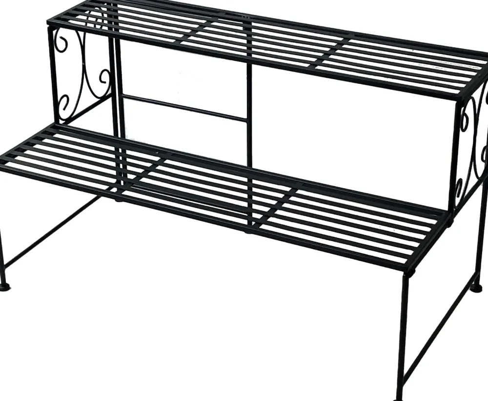 Kreiere einen verspielten Look mit diesem Pflanzenregal aus Metall. Das Metall ist schwarz pulverbeschichtet, was ihm in Kombination mit den klaren Linien einen industriellen Look verleiht. Die Stufen dieses Blumenständers ermöglichen es dir, deine Pflanzen auf verschiedenen Höhen zu platzieren, um ein schönes dekoratives Ganzes zu schaffen! Die Maße dieses Pflanzenständers sind 74 x 40 x 41 cm.