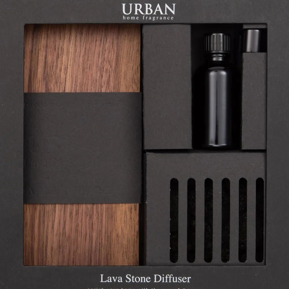 Dieses Raumduft-Set aus Vulkanstein von Intratuin ist ein echter Hingucker! Das Set besteht aus einem Holzbrett, auf dem Vulkansteine platziert werden können, sowie einem Fläschchen mit Duftöl und einer Pipette.