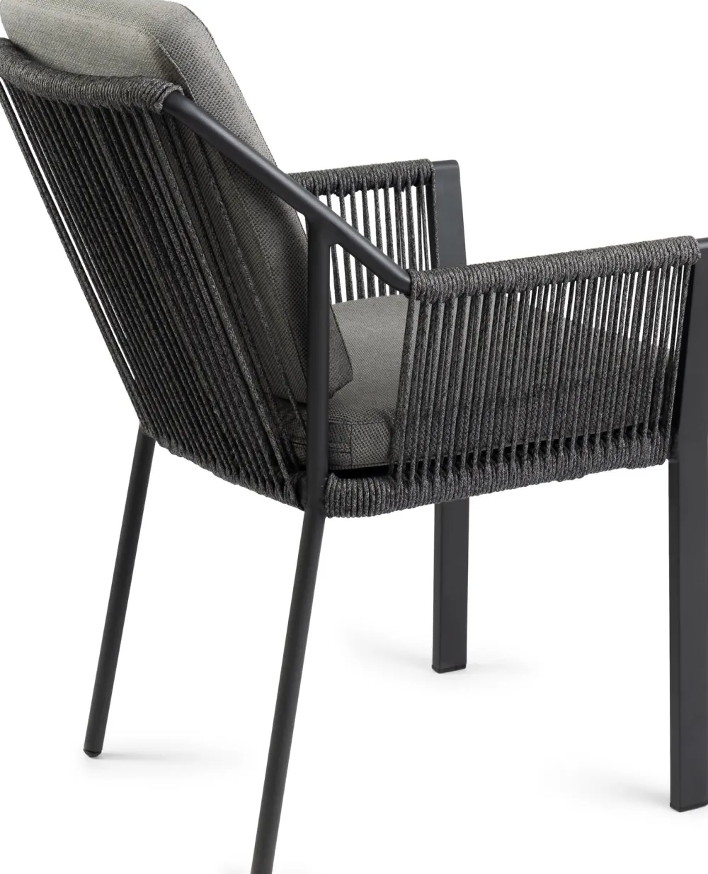 Der Gartenstuhl ‚Liv‘ hat die Maße 58 x 61 x 81 cm und wird inklusive der komfortablen Sitz- und Rückenkissen in der Farbe Grau geliefert. Dieser Dinner-Stuhl für außen ist wetterbeständig. Garantie: 3 Jahre.