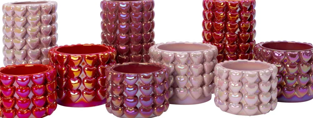 Bring einen Hauch von Liebe in deine Einrichtung mit dieser bezaubernden Vase Fay aus der Kollektion von Intratuin! Die zartrosa Farbe mit dem 3D-Herzmotiv und der schillernden Oberfläche verleiht jedem Raum eine elegante, romantische Note. Stell sie auf eine Fensterbank, einen Tisch oder ein Regal, um deine Lieblingspflanzen stilvoll zu präsentieren. Die Vase ist 16 x 16 x 27 cm groß.