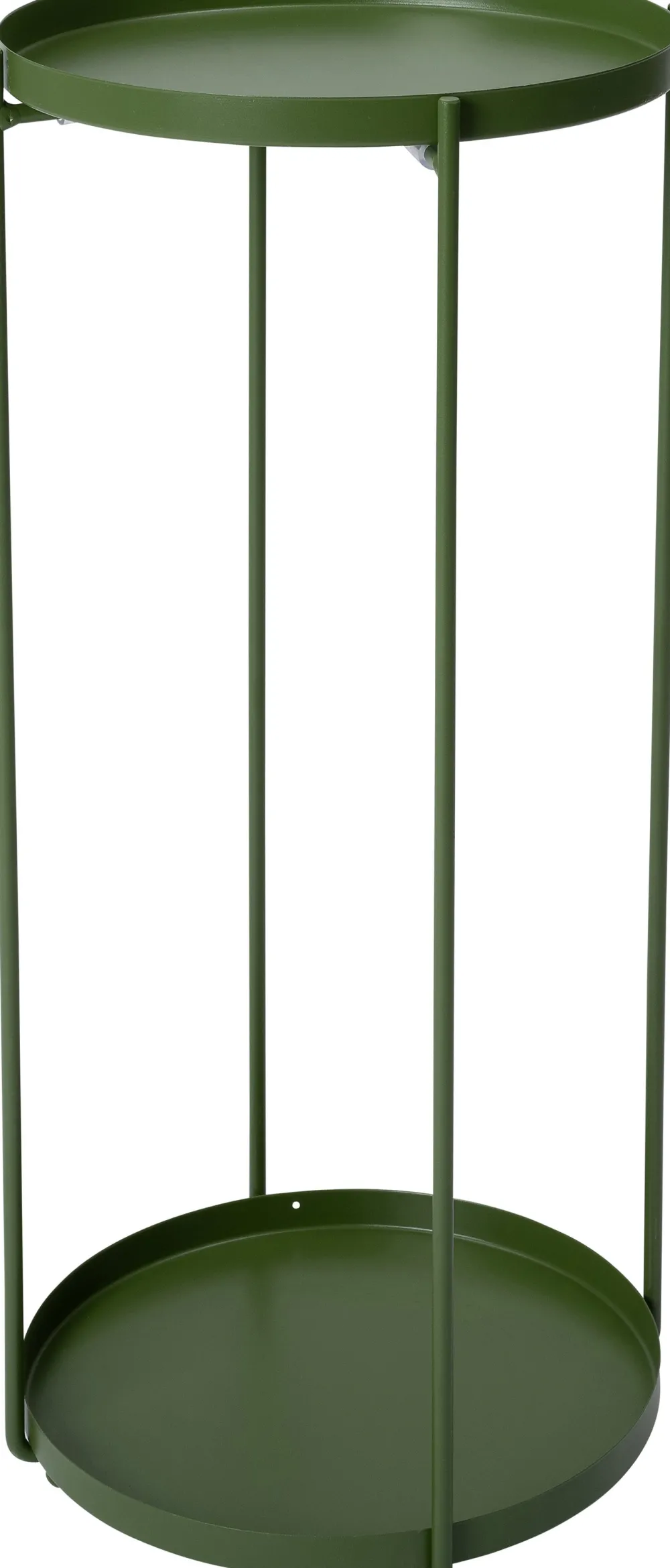 Der Pflanzentisch hat eine runde Platte mit einem Durchmesser von 27 und einer Höhe von 57,5 cm. Er ist in zwei Farben und Größen erhältlich.