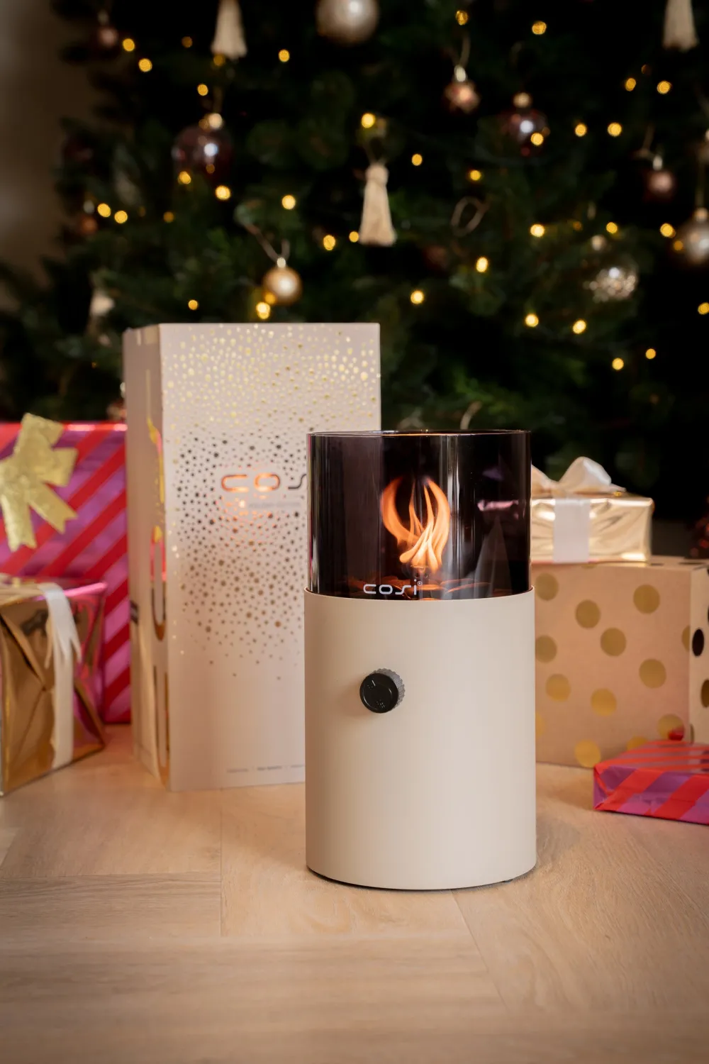 Überrasche deine Liebsten oder dich selbst mit diesem Tischkamin von Cosiscoop, der durh das Rauchglas besonders luxuriös wirkt. Das Cosiscoop Original in Beige-Rauchglas ist einzigartig, da es – anders als die anderen Modelle – keinen Griff hat.