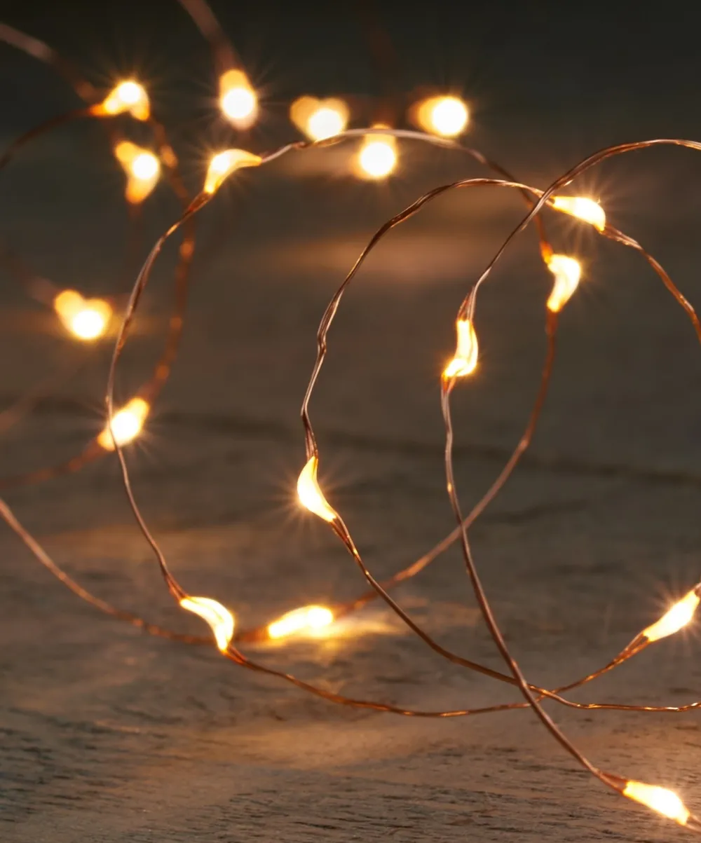 Diese 2 m lange Drahtlichterkette von Intratuin in der Farbe Kupver hat 40 klassisch warme LED-Lämpchen und ist batteriebetrieben, wodurch du die die Lichterkette überall im Haus einsetzen kannst. Platziere die Lichterkette z.B. in einer durchsichtigen Vase, Flasche oder Laterne oder kombiniere sie mit (Weihnachts-)Dekoration deiner Wahl. Auch in einer Schale oder auf einem Deko-Teller kommt diese Lichterkette gut zur Geltung. Diese Lichterkette eignet sich zudem als Beleitung für größere Pflanzen.