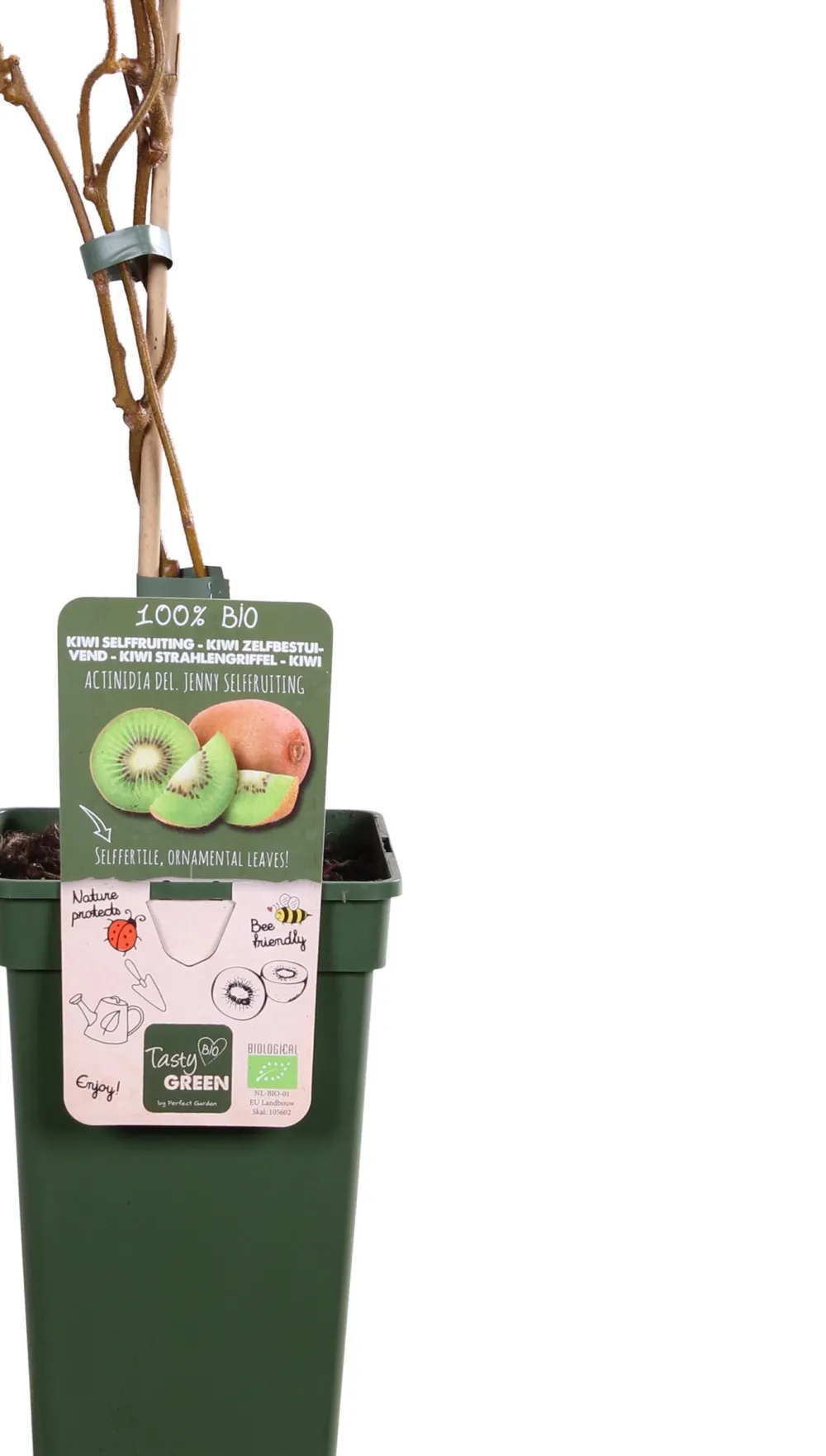 Die Kiwi ‚Jenny‘ ist eine kräftige Kletterpflanze, die bis zu 4 Meter hoch werden kann. Die Pflanze blüht im Mai-Juni mit gelb-weißen Blüten, und die Früchte reifen etwa im November. Obwohl die erste Ernte mehrere Jahre dauern kann, lohnt sich das Warten. Die Pflanze bevorzugt einen sonnigen, geschützten Standort und sollte in feuchten, humusreichen Boden gepflanzt werden.