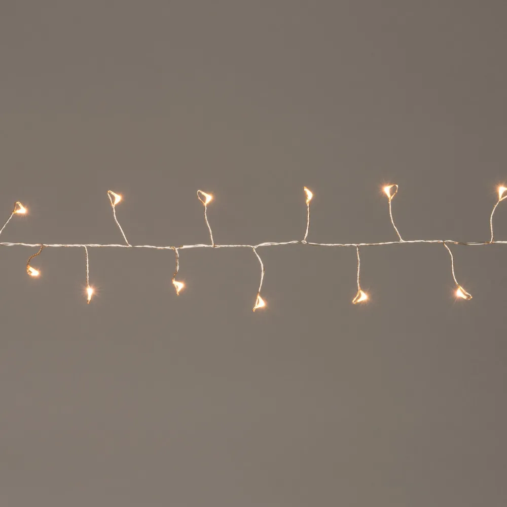 Kreiere deine eigenen beleuchtete Weihnachtsdekoration unter einer Glasglocke, in einer Laterne oder Vase. Befülle deine kleine Zauberwelt mit dieser magischen Lichterkette, natürlicher Deko wie z.B. Tannenzapfen oder Weihnachtsschmuck. So hast du im Handumdrehen eine orgiginelle Weihnachtsdekoration, die dich buchstäblich zum Strahlen bringt. Diese LED-Lichterkette aus der Serie ‚Ivy‘ ist 2,25 m lang, erzeugt ein schönes warmweißes Licht und hat ein silbernes Kabel.