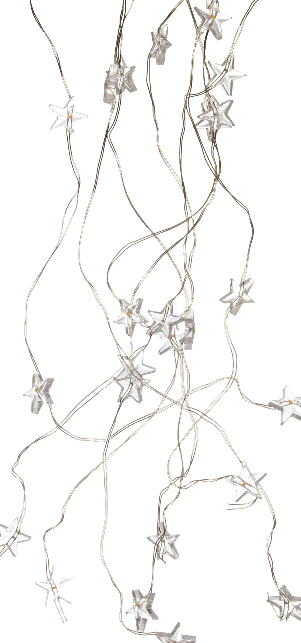 Lichtkaskade mit Sternchen, 8 x 0,5 m, warmweiße LEDs, batteriebetrieben, silber