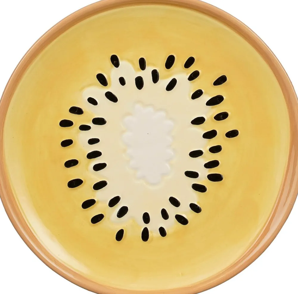 Bereichere deinen gedeckten Tisch mit dem Exotica Frühstücksteller von Mica Decorations, einer exotischen Ergänzung deines Geschirrsets! Der Steingutteller hat die Form einer Kiwi und ist in einem frischen, hellen Grün gehalten. Er ist handgefertigt und kann sowohl in die Spülmaschine als auch in die Mikrowelle gestellt werden. Er lässt sich auch sehr gut mit anderem Exotica-Geschirr von Mica Decorations kombinieren! Die Maße dieses Frühstückstellers sind 20,5 x 20,5 x 2 cm.