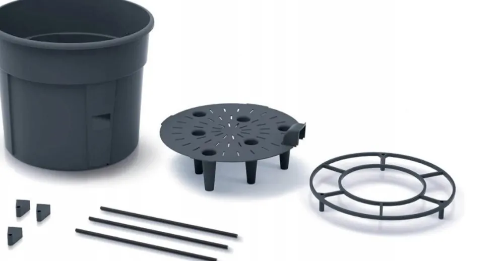 Ein frostsicherer und wetterfester Topf, der optimale Wachstumsbedingungen für Tomatensträucher bietet. Das Set verfügt über Ringe, die die Pflanze umschließen und so die Pflanze stabilisieren.