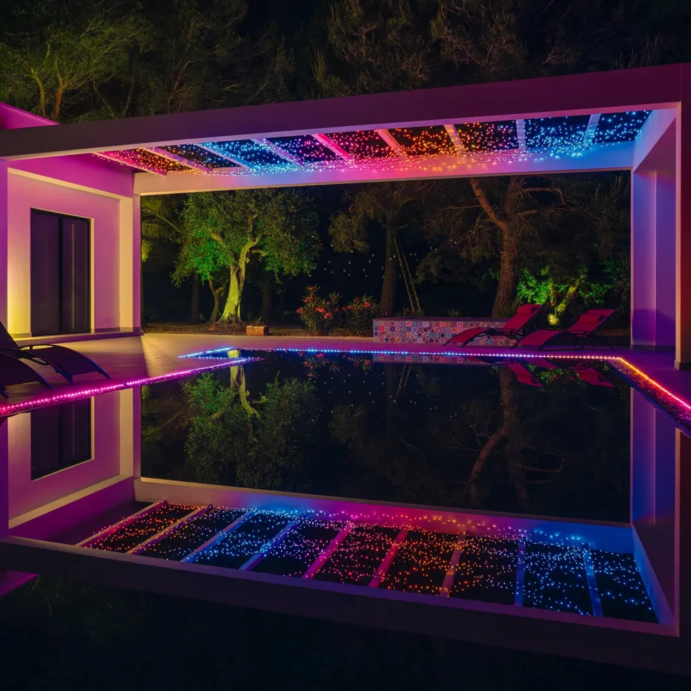 Um es noch auffälliger und größer zu machen: Bei guter WLAN-Abdeckung können bis zu 4.000 Twinkly LED-Lichter miteinander synchronisiert und in eine Lichtinstallation eingebunden werden. Auf diese Weise kannst du eine echte Lichtshow programmieren! Twinkly kann auch mit Google Assistant und Amazon Alexa integriert werden.