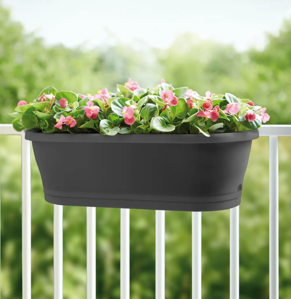 - Der dunkelgraue Balkonkasten ist frostbeständig und daher für alle Jahreszeiten geeignet.