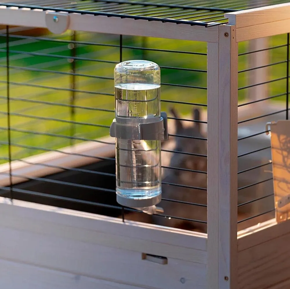 Dieser Kaninchenstall ist mit allem Komfort ausgestattet, um dein Haustier von Anfang an willkommen zu heißen: Heuraufe, Futterschale aus Kunststoff und Trinkflasche, ein Haus mit praktischem Dach und Leiter. Das Ganze ist sehr stabil und mit Füßen ausgestattet, die einen perfekten Stand gewährleisten.