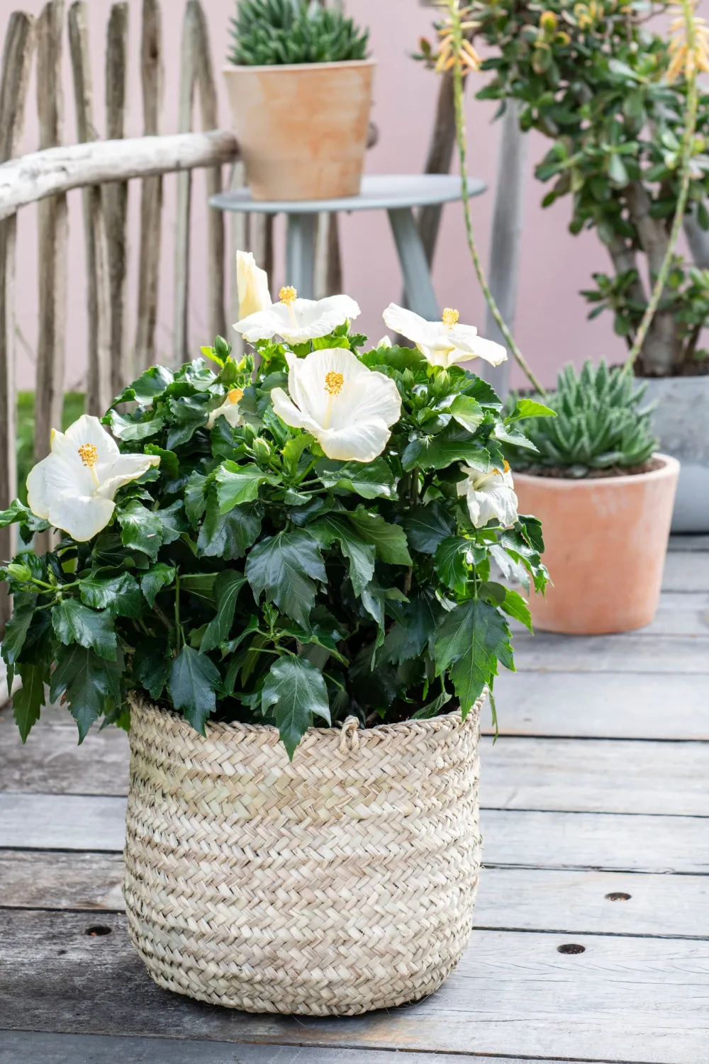 Den Hibiskus gibt es in vielen verschiedenen, intensiv leuchtenden Blütenfarben. Einige Sorten haben sogar gefüllte Blüten. Die Blätter haben ein schönes helles Grün. Der Chinesische Roseneibisch ist bekannt als schöner Strauch für den Garten, macht aber auch in einem Kübel auf der Terrasse eine gute Figur.