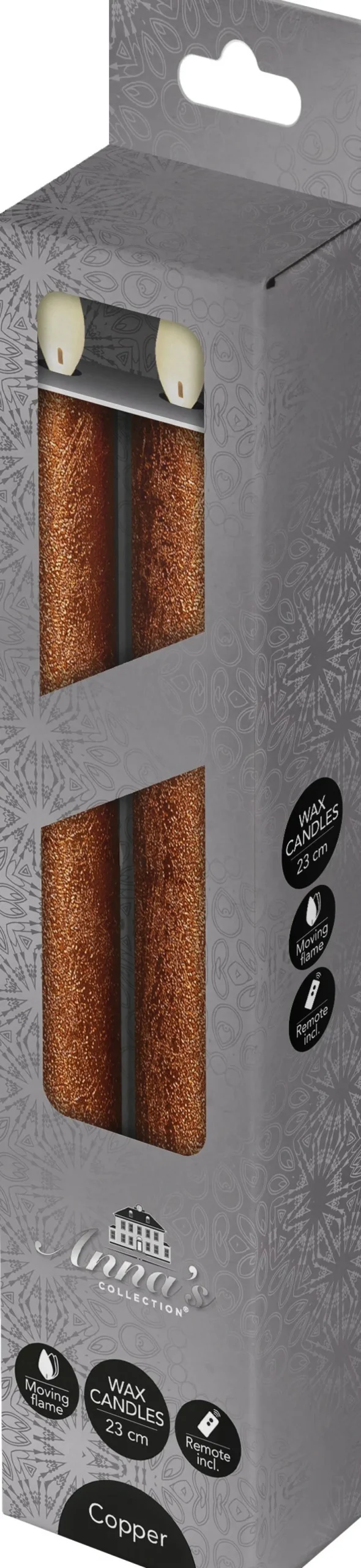 Diese 2 Stabkerzen haben LED-Lämpchen und lassen sich bequem mit der mitgelieferten Fernbedienung ein- und ausschalten. Die LED-Stabkerzen in der Farbe Kupfer sind batteriebetrieben, haben eine bewegliche Flamme und sind 23 cm lang. Erhältlich in versc