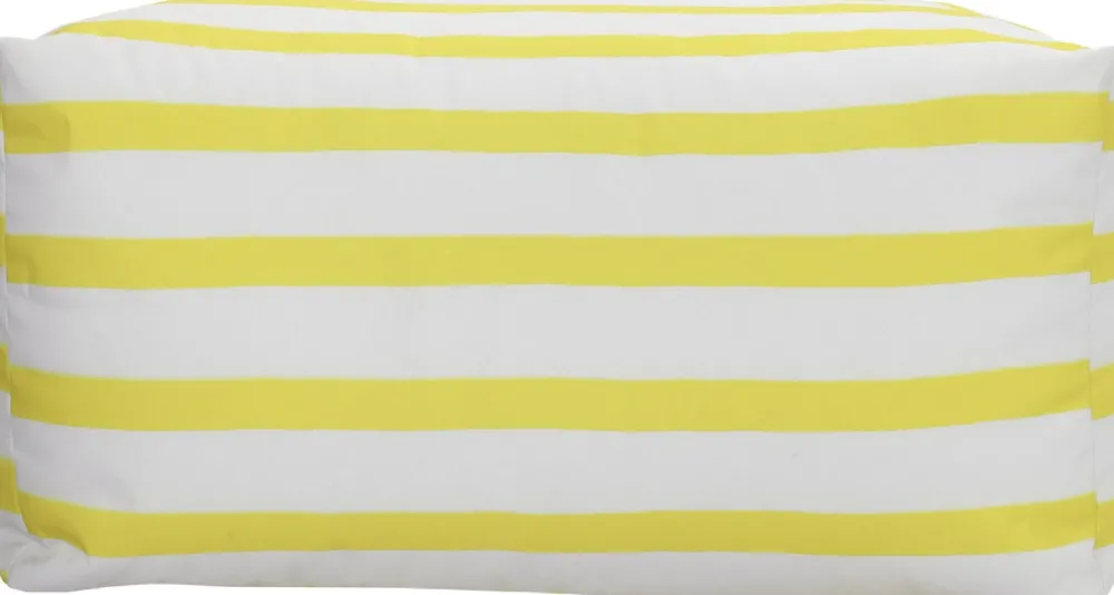Genieße die Zeit draußen mit diesem coolen Hocker. Mit seinem frischen Streifendesign in gelb – weiß ist er garantiert ein Blickfänger auf deiner Terrasse oder deinem Balkon. Die robuste EPS-Füllung (kleine Styropol-Kügelchen) passt sich deinem Körper an und sorgt für einen guten und bequemen Sitz. Der Stoff kann Wasser vertragen, aber wir empfehlen, den Hocker nach dem Gebrauch trocken zu lagern, damit er lange schön bleibt.