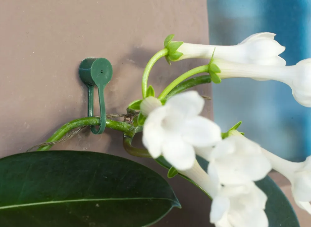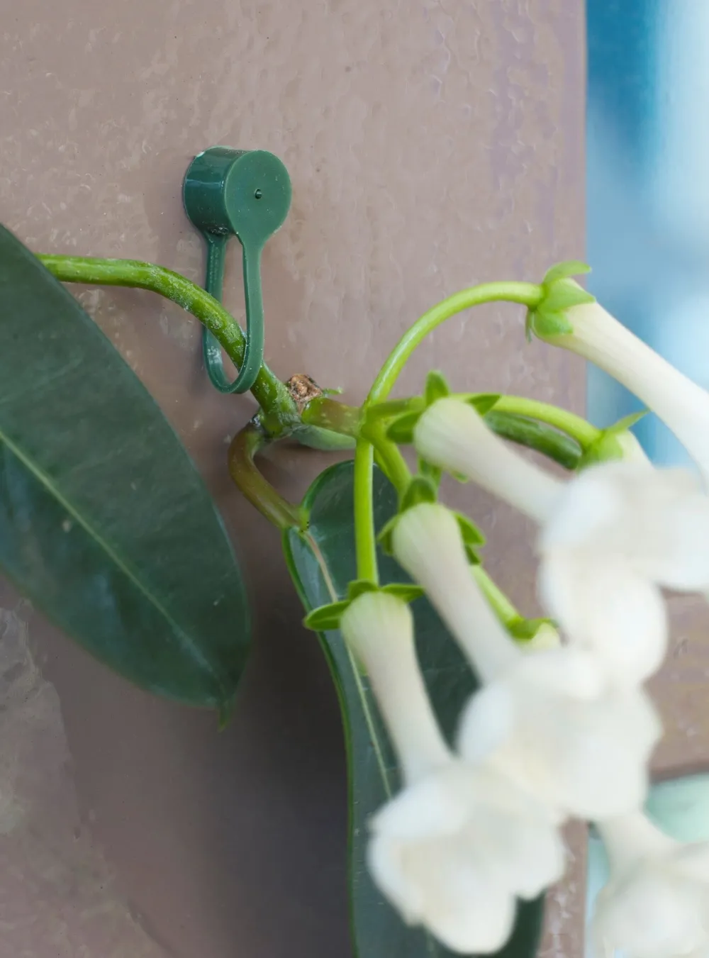 Pflanzenklammern aus grünem Polyethylen (PE) mit Schnappverbindung von Nature zum Stützen der Zweige von Kletterpflanzen. Das Set besteht aus 15 Pflanzenklammern und ist geeignet für einen Zweigdurchmesser von maximal 15 mm. Du piekst die Klammern, ähnlich einer Reißzwecke, in den Holzzaun oder einen anderen Untergrund, der dafür geeignet ist, führst den zu stützenden Zweig hindurch und lässt die Klammer zuschnappen. So hat deine Pflanze eine gute Stütze und kann sicher weiterranken.