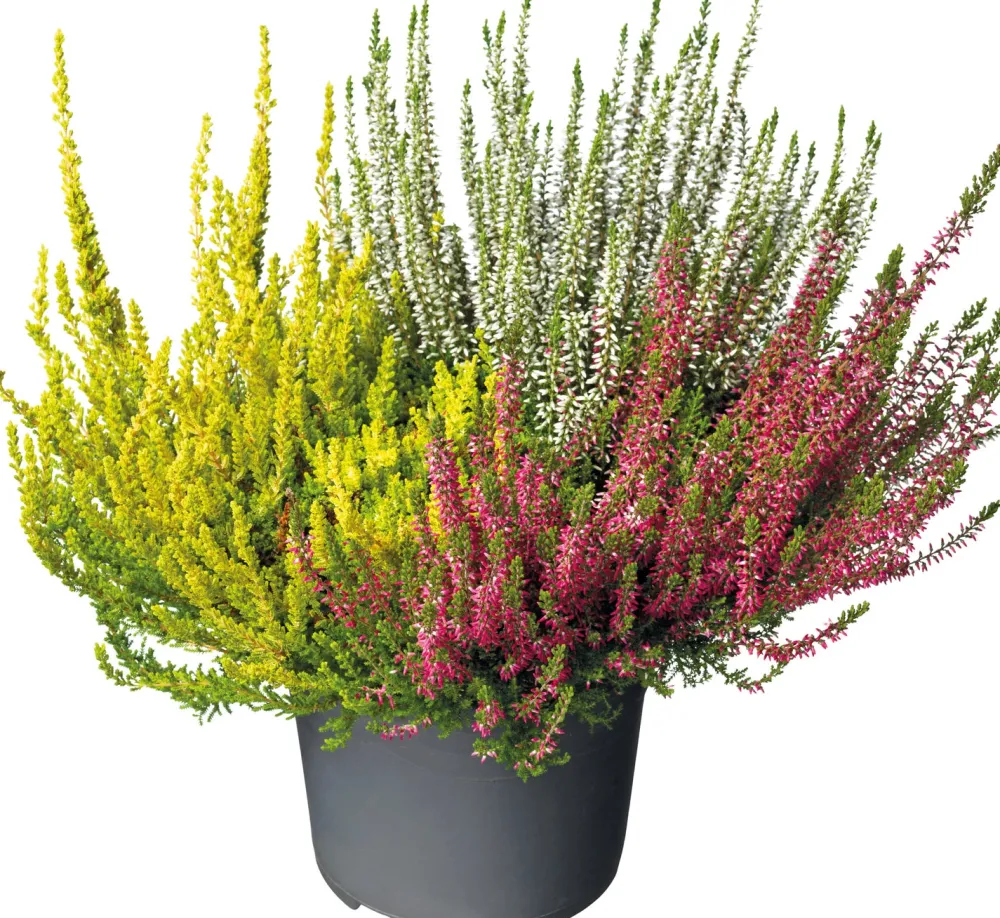 Die Besenheide ist eine lang blühende Heideart. Von August bis November kann man die verschiedenfarbigen Blüten sehen. Dieses Heidekraut wächst als Bodendecker und wird nach ein paar Jahren bis zu 30 cm hoch. Wähle einen Platz in der Sonne oder im Halbschatten in einem möglichst sauren, gut durchlässigen Boden. Calluna ist gut winterhart und verträgt Meeresbrisen, so dass sie auch in Küstengärten verwendet werden kann.