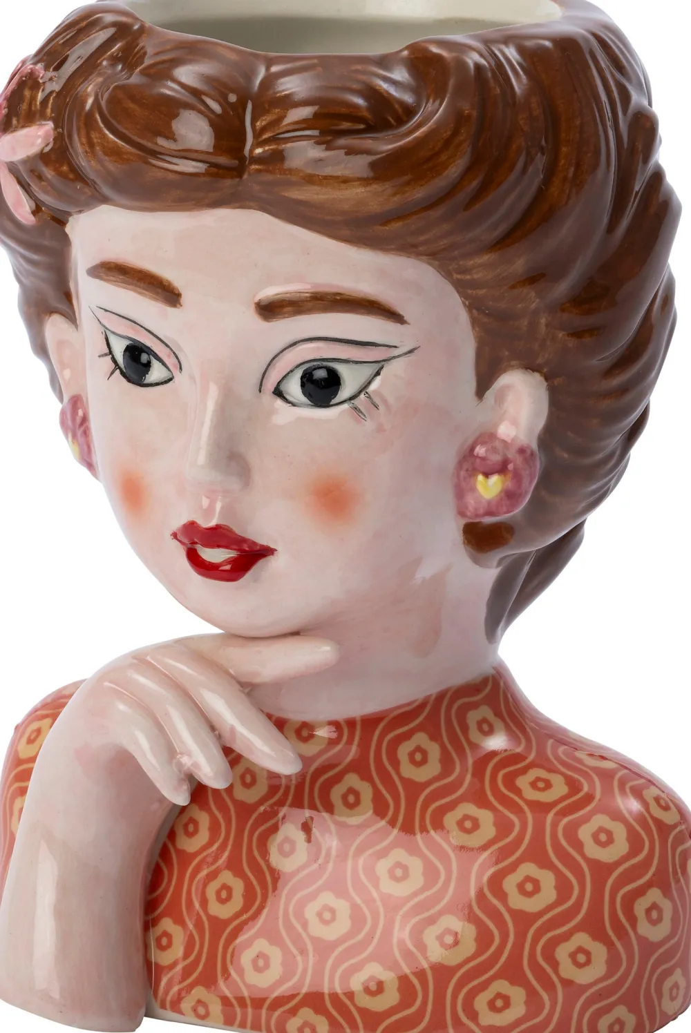 Mit diesem charmanten Blumentopf in Form eines Mädchenkopfes bringst du ein verspieltes und einzigartiges Element in dein Interieur. Aus hochwertiger Keramik und mit viel Liebe zum Detail gefertigt, präsentiert sich dieser Blumentopf in einem fröhlichen Design. Er ist ideal, um deinen Pflanzen eine persönliche Note zu verleihen und passt in jeden Raum, in dem du etwas mehr Flair erzeugen möchtest. Kombiniere Funktionalität mit künstlerischem Charme in diesem auffälligen Accessoire. Ein echter Blickfang in deinem Zuhause!