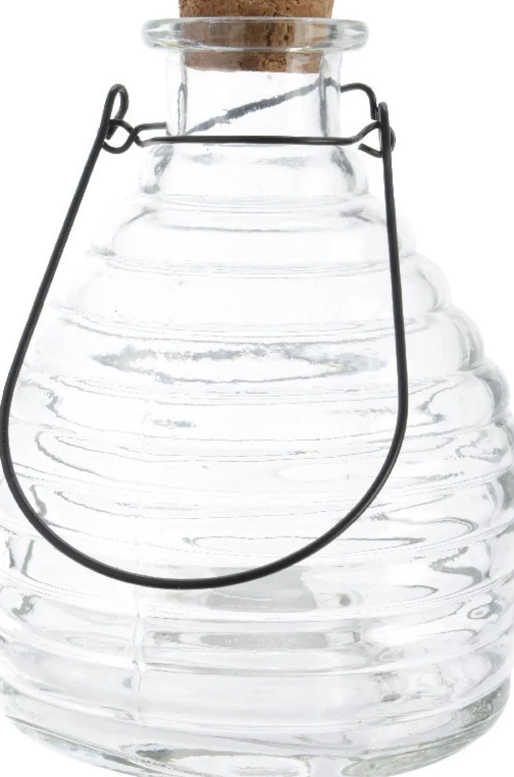 Diese Wespenfalle von Decoris ist nicht nur hübsch sondern auch praktisch. Die Öffnung am Boden des Glases ermöglicht den Wespen den Zugang zum Inneren, nach dem sie die Falle allerdings kaum noch verlassen können.