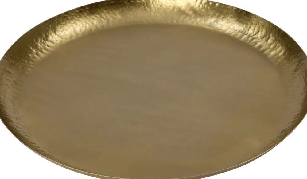 Dieser goldene runde Dekoteller ist in verschiedenen Größen erhältlich. Dieser Teller misst 28 x 28 x 1 cm.