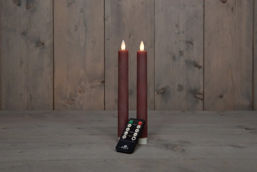Diese 2 Stabkerzen haben LED-Lämpchen und lassen sich bequem mit der mitgelieferten Fernbedienung ein- und ausschalten. Die LED-Stabkerzen in der Farbe Rosa sind batteriebetrieben, haben eine bewegliche Flamme und sind 23 cm lang. Erhältlich in verschi