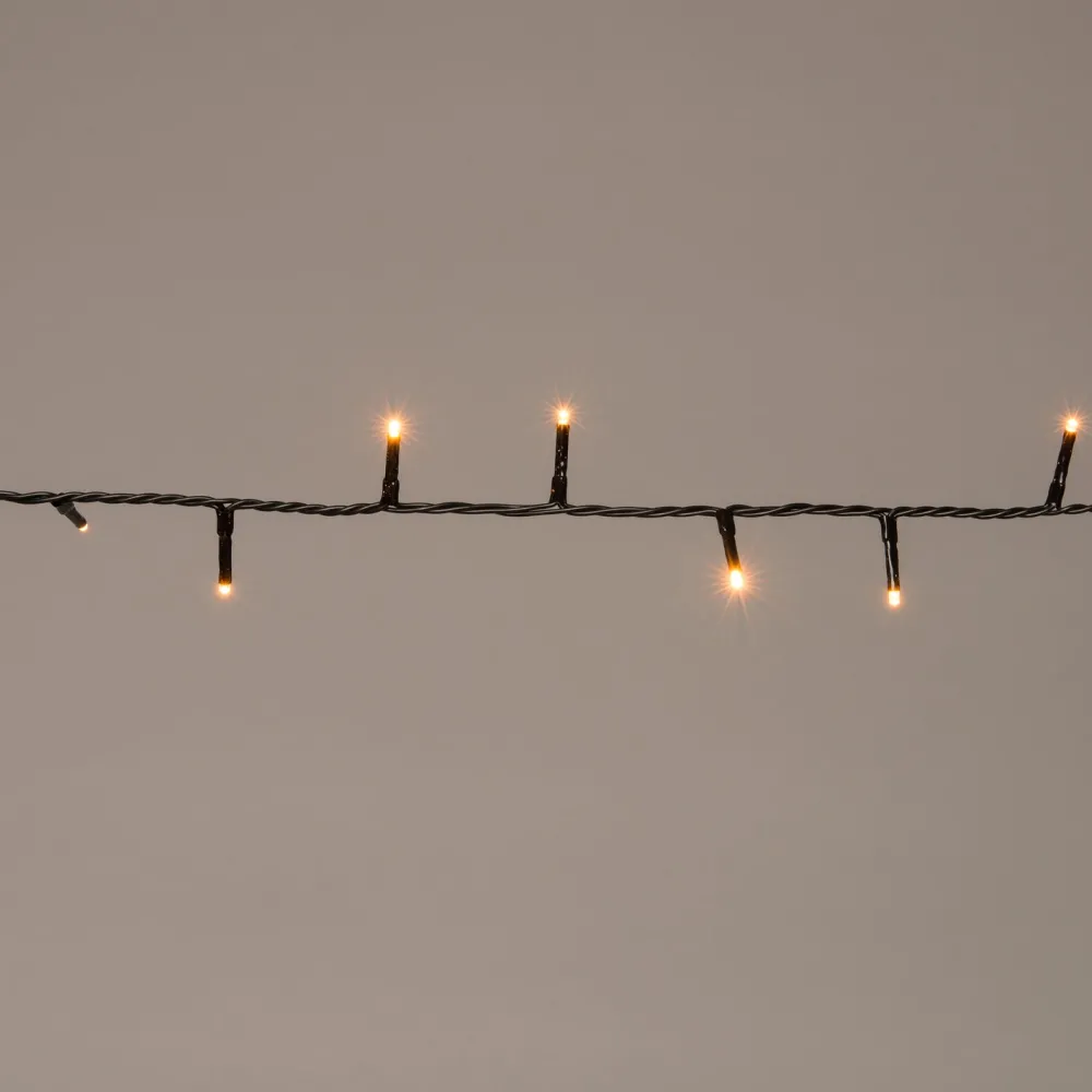 Schöne schwarze Lichterkette von Intratuin mit einer Länge von 4 m und mit 80 Reiskorn-LEDs, die klassisch warmes Licht erzeugen.