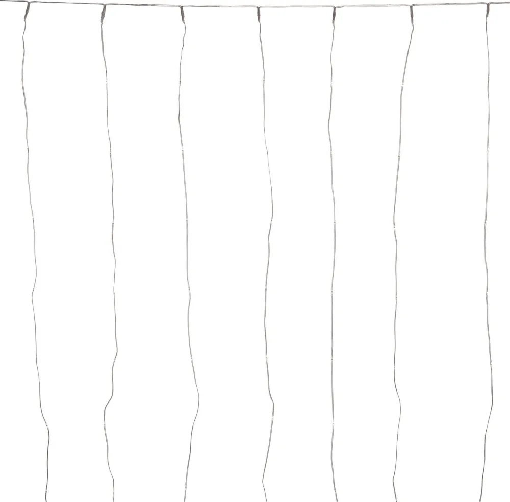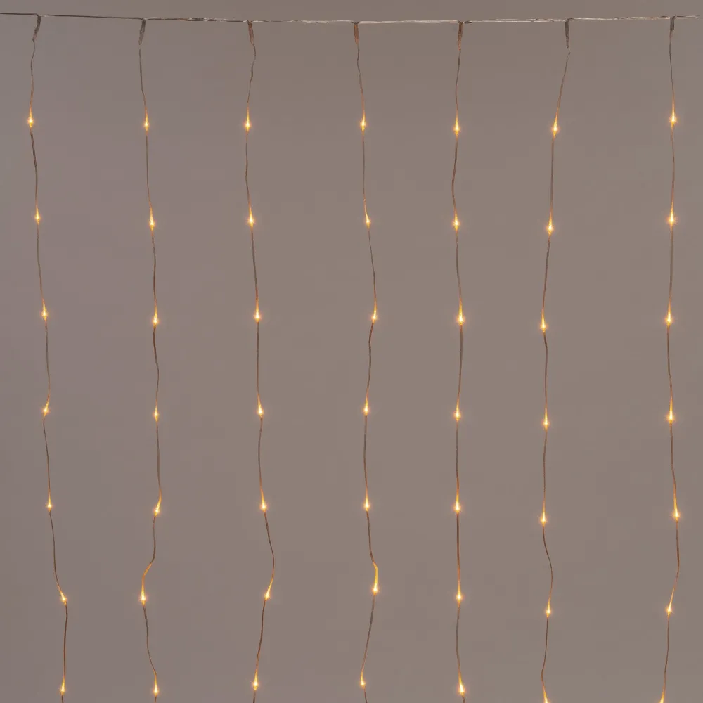 Die Vorhangbeleuchtung besteht aus 20 transparenten Strängen mit insgesamt 280 LED-Lichtern, die für extra warmes Licht sorgen. Die Breite des beleuchteten Vorhangs beträgt 2 m und die Länge der Stränge 1,4 m. Diese Weihnachtsbeleuchtung verfügt über eine Zeitschaltuhr.