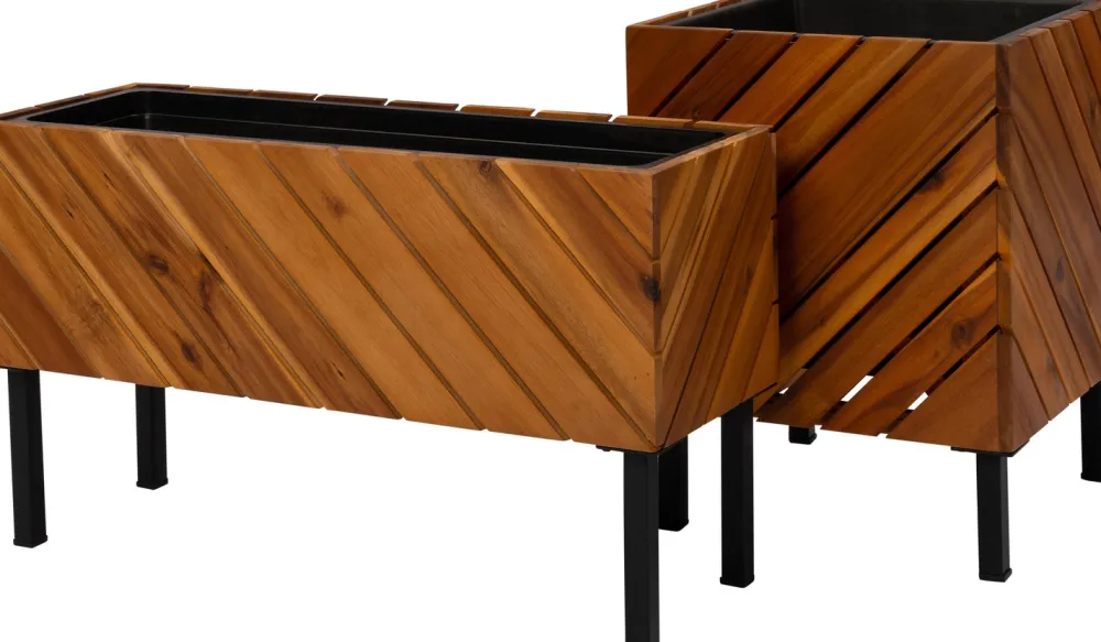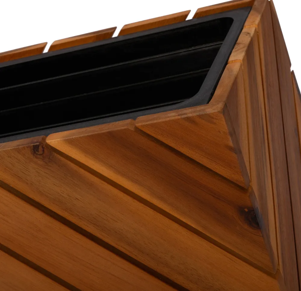 Holz lässt sich perfekt mit allen Farben kombinieren und kann daher endlos mit anderen Pflanzgefäßen und Blumenkästen gemischt und abgestimmt werden. Auch Blumen in allen Farben sehen in diesem Pflanzgefäß toll aus. Dieses Pflanzgefäß auf Beinen aus Akazienholz ist eine echte Bereicherung für deinen Garten! Das Pflanzgefäß hat ein praktisches Entwässerungsloch und eine Größe von 32 x 32 x 42 cm.