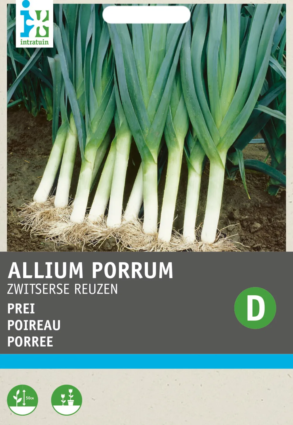 Bei dieser Porree-Sorte ‚Schweizer Riesen‘ handelt es sich um einen frühen Sommerlauch, der von Ende März bis Mitte Mai in einem Saatbeet gesät wird.Die Samen keimen bereits bei niedrigen Temperaturen, aber müssen dennoch abgedeckt werden, weil der Lauch ein sog. ‚Dunkelkeimer‘ ist. Die jungen Lauchpflanzen können ab April ausgepflanzt werden, wenn sie so dick sind wie ein Bleistieft. Pflanze den Lauch in einem Pflanzabstand von 40 x 15 cm so tief wie möglich ein. Beim Anbau ist es ratsam, die Pflanzen anzuhäufeln, damit der untere Teil des Lauchs weiß und zwart bleibt. Zwischen Mitte August und Mitte November kannst du den Lauch ernten. Diese Sorte Allium porrum ‚Schweizer Riesen‘ bildet lange Lauchstangen aus und kann über einen langen Zeitraum hinweg bis weit in den Herbst hinein geerntet werden. Diese Sorte ist auch gut winterhart.