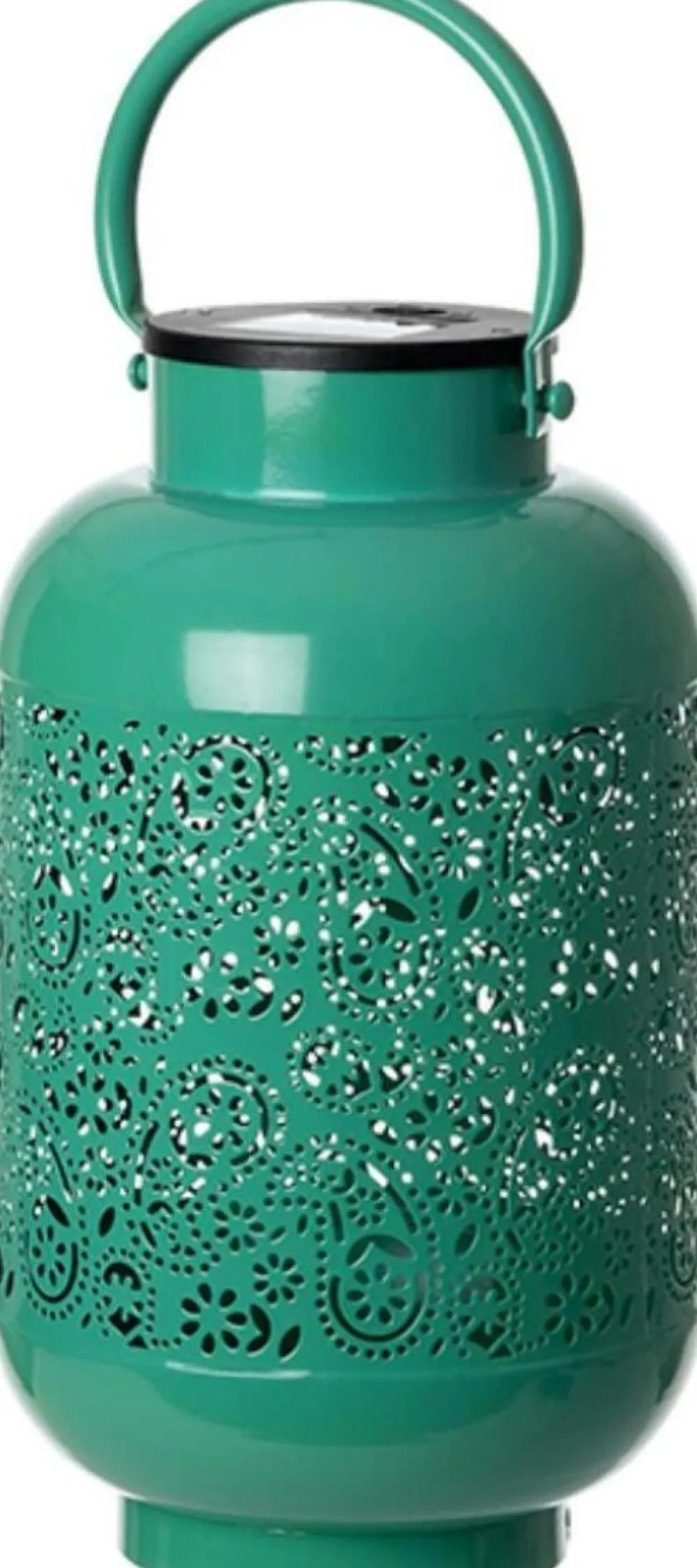 Diese grüne Laterne funktioniert mit Solarenergie. Super praktisch! So musst du nie die Batterien wechseln. Die Solarlaterne lässt sich dank des Metallgriffs leicht aufhängen und hat einen Durchmesser von 16 cm. Aber auch dem sommerlich gedeckten Gartentisch verleiht sie sofort mehr Atomsphäre. Gestalte deinen Garten oder Balkon mit dieser schönen Laterne noch gemütlicher. An einem extra sonnigen Platz laden sich die Lampen besonders gut auf und leuchten abends schön lange.