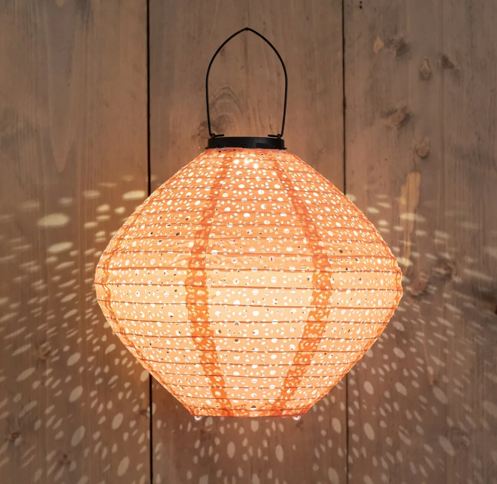 Diese schöne Solar-Hängeleuchte ist eine wundervolle Ergänzung für deinen Garten. Die Lampe ist aus Nylon gefertigt und bringt durch das schöne warmweiße Licht der Lampe viel zusätzliche Atmosphäre. Zudem zaubert das Muster auf dem Lampenschirm wunderschöne Lichtspiele in den abendlichen Garten. In unserem Sortiment findest du diese Solarleuchte in verschiedenen Farben und Formen. Gruppiere sie für ein tolles Gesamtbild!