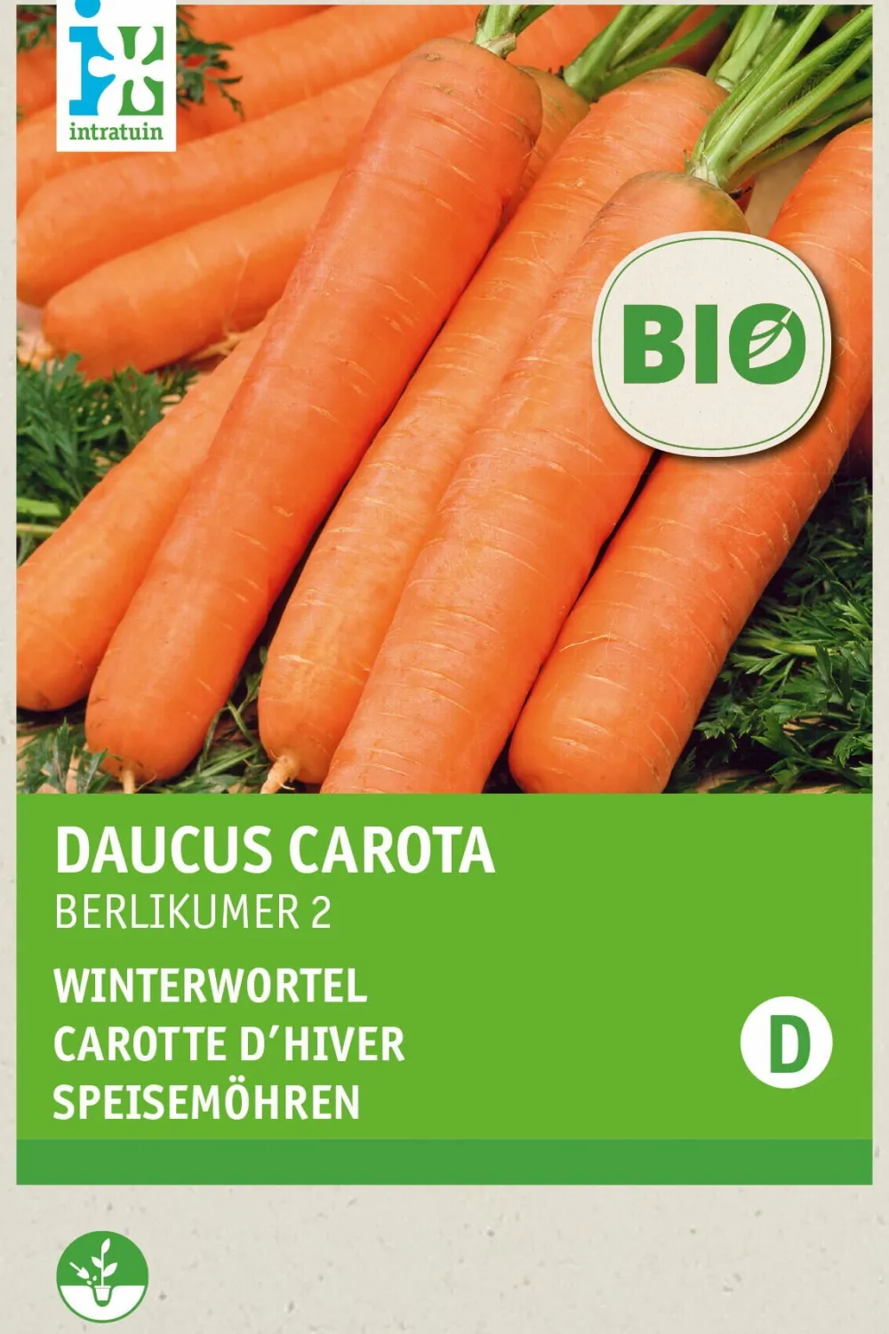 Die Speisemöhre ‚Berlikumer 2‘ schmeckt köstlich süß und kann lange wachsen, was ihren Ertrag erhöht. Die orangefarbenen Wurzeln haben eine feste Struktur und werden etwa 25 cm lang, sie lassen sich gut lagern. Draußen im Garten kann zwischen März und Juni in Reihen mit 20 cm Abstand gesät werden. Dünne nach dem Auflaufen aus, bis der Abstand zwischen den Pflanzen 3 cm beträgt. Je größer der Abstand zwischen den Möhren ist, desto dicker können sie wachsen. Geerntet wird von September bis Dezember.