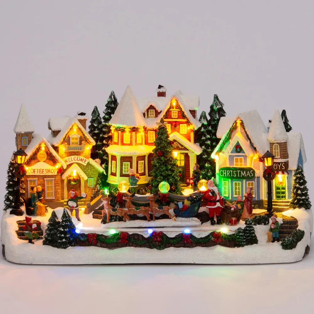 Mit dieser Weihnachtsdorf-Miniatur von Intratuin sorgst du für mehr Lebendigkeit und winterliche Atmosphäre in deinem Weihnachtsdorf. Im Vordergrund bewegt sich der Rentierschlitten und in der Mitte dreht sich der Weihnachtsbaum. Außerdem sorgt das Weihnachtsdorf für eine gesellige Stimmung mit dem Spielzeugladen und dem Café. Die Kinder werfen vergnügt mit Schneebällen und der Weihnachtsmann sorgt dafür, dass jeder mit einem Geschenk belohnt wird.