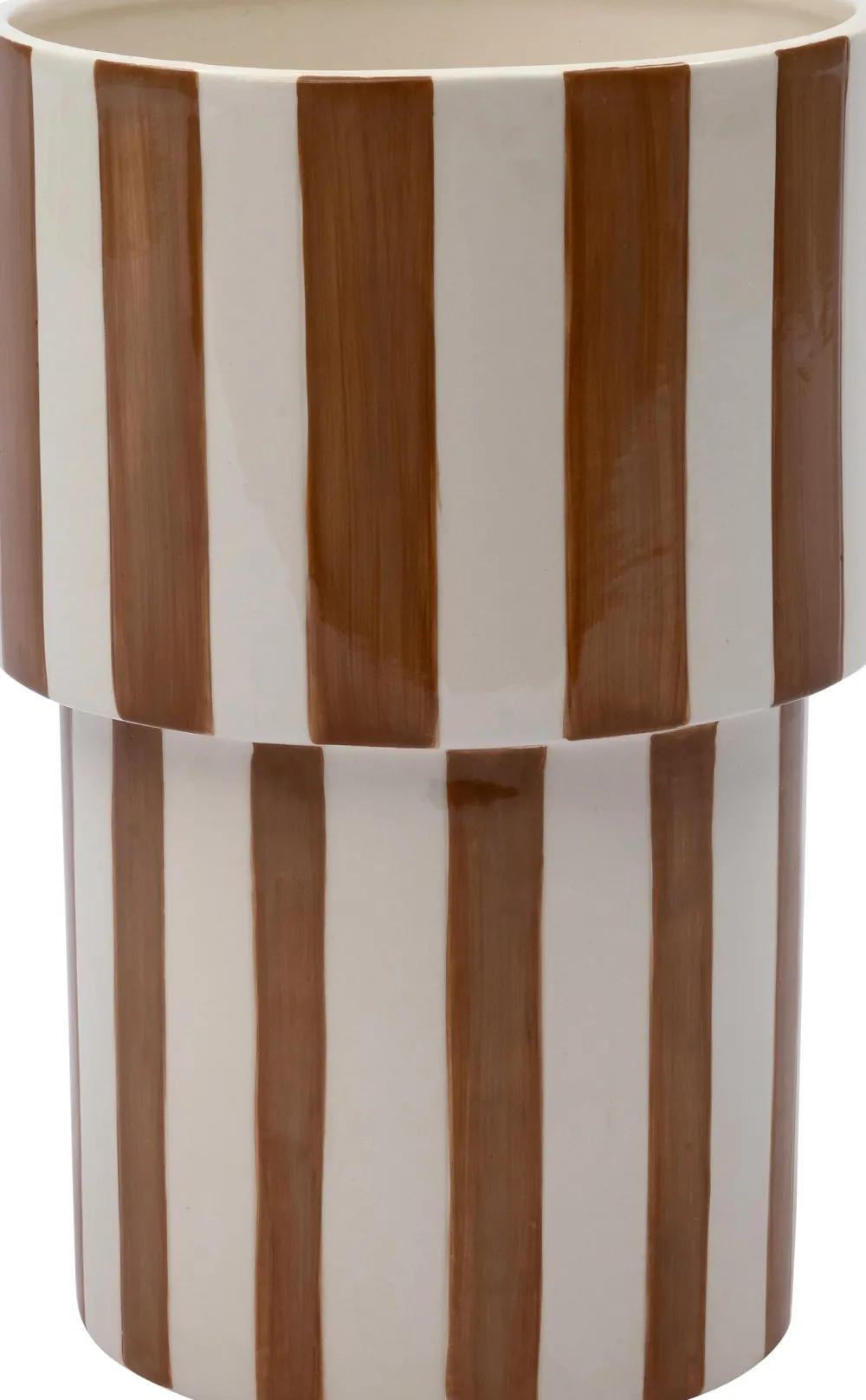 Dieser Blumentopf Amel aus der Intratuin-Kollektion fällt auf jeden Fall auf! Der Topf hat eine schöne glasierte Oberfläche mit Streifen in den Farben Braun und Weiß.