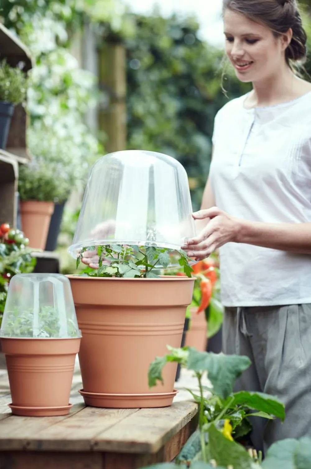 Lasse Pflanzen, Stecklinge und selbstgezogenes Gemüse schneller wachsen mit dem ‚green basics‘ Anzuchtkasten. Der Deckel lässt sich einfach auf einen der ‚green basics‘ Anzuchttöpfe setzen und ist ideal für größere Kräuter wie Schnittlauch, Basilikum oder Tomatenpflanzen. Mit der Lüftungsscheibe auf der Oberseite kannst du die Belüftung, Sauerstoffzufuhr und Temperatur im Anzuchtkasten einfach regulieren. Der Deckel sorgt außerdem dafür, dass keine Schädlinge an dein Saatgut, deine Stecklinge oder deine Ernte gelangen können. Alle Produkte aus der Elho ‚green basics‘-Kollektion sind aus recyceltem Kunststoff hergestellt. Du kannst den Anzuchtkasten auch problemlos in die Sonne stellen, denn der UV-Filter sorgt dafür, dass Stecklinge und Pflanzen nicht von der Sonne verbrannt werden. Darüber hinaus ist der Anzuchtkasten wartungsfreundlich und leicht zu reinigen. Der Anzuchtkasten ist wetterfest und für Temperaturen bis -40 °C geeignet.