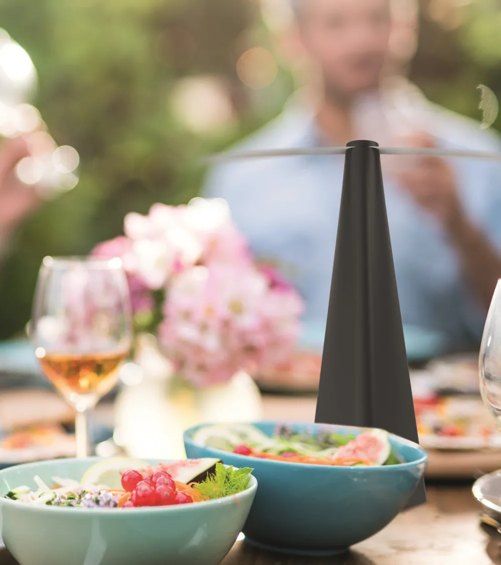 Der Fliegenwedler von Intratuin ist ein kompakter Fliegenjäger, aber die Flügel haben eine Gesamtspannweite von 40 cm, was bedeutet, dass du normalerweise 2 Fliegenwedler verwenden kannst, um deinen ganzen Tisch von Fliegen und Wespen frei zu halten. Weil er so schön kompakt ist, kannst du ihn auch leicht zum Picknick im Park mitnehmen. Der Fliegenwedler wird mit 2 AA-Batterien betrieben. Er ist auf dem Tisch sicher, auch für Kinder und Haustiere, da er dank des Soft-Touch-Stopp-Schutzes sofort stoppt, wenn sich die Flügel berühren.