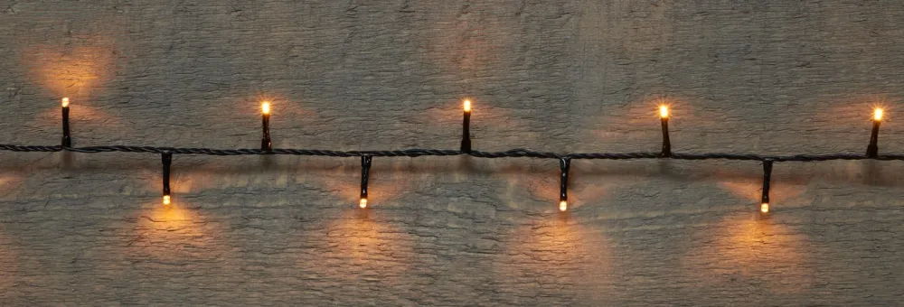 Schöne schwarze Lichterkette von Intratuin mit einer Länge von 8 m und mit 160 Reiskorn-LEDs, die klassisch warmes Licht erzeugen.