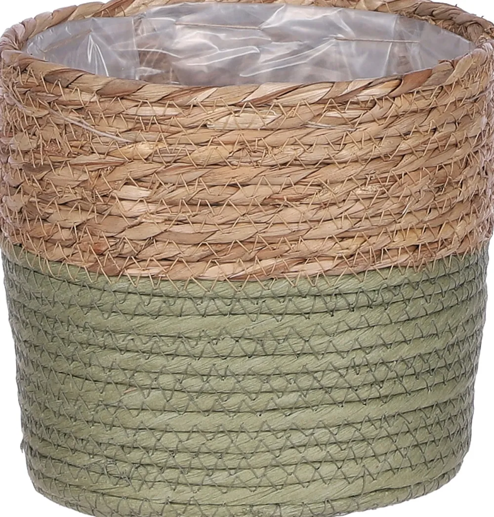 Der Pflanzkorb ‚Rachel‘ aus der Kollektion von Mica Decorations ist funktional und verleiht deiner Einrichtung zugleich einen schönen, natürlichen Touch. Der Übertopf-Korb ist nämlich aus Seegras gefertigt und somit auch eine umweltfreundliche Wahl. Das natürliche Element ist auch im oberen Teil des Pflanzkorbes zurückzufinden, während der untere Teil in zartem Grün gehalten ist. An der Innenseite ist der Korb mit Plastik ausgekleidet, sodass er sich gut als Übertopf oder Pflanzkorb für Pflanzen eignet, aber man kann ihn ebenso als Aufbewahrungskorb nutzen. Pflanzkorb ‚Rachel‘ ist in verschiedenen Größen und Farben erhältlich. Dieser Korb hat einen Durchmesser von 18 cm und ist ebenfalls 18 cm hoch.