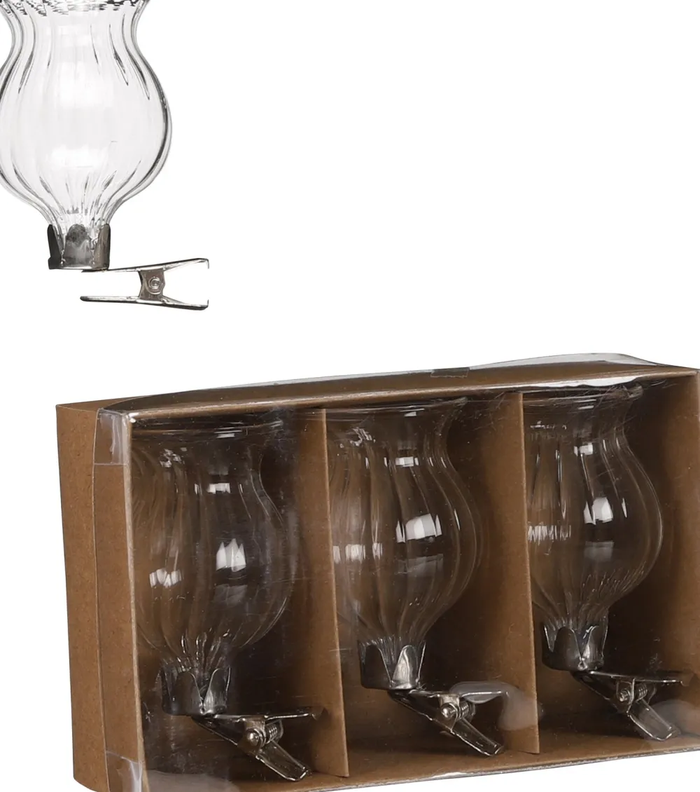 Mit diesem Set aus drei geriffelten Glasvasen von Mica Decorations kannst du überall einen Ort zaubern, um schöne Blumen zu präsentieren. Die Vasen sind an einem Clip befestigt, so dass man sie leicht befestigen kann, beispielsweise an einen Deko-Ring aus der neuen Kollektion! Die kleinen Vasen sind handgefertigt und haben eine Größe von 4 x 6 cm.