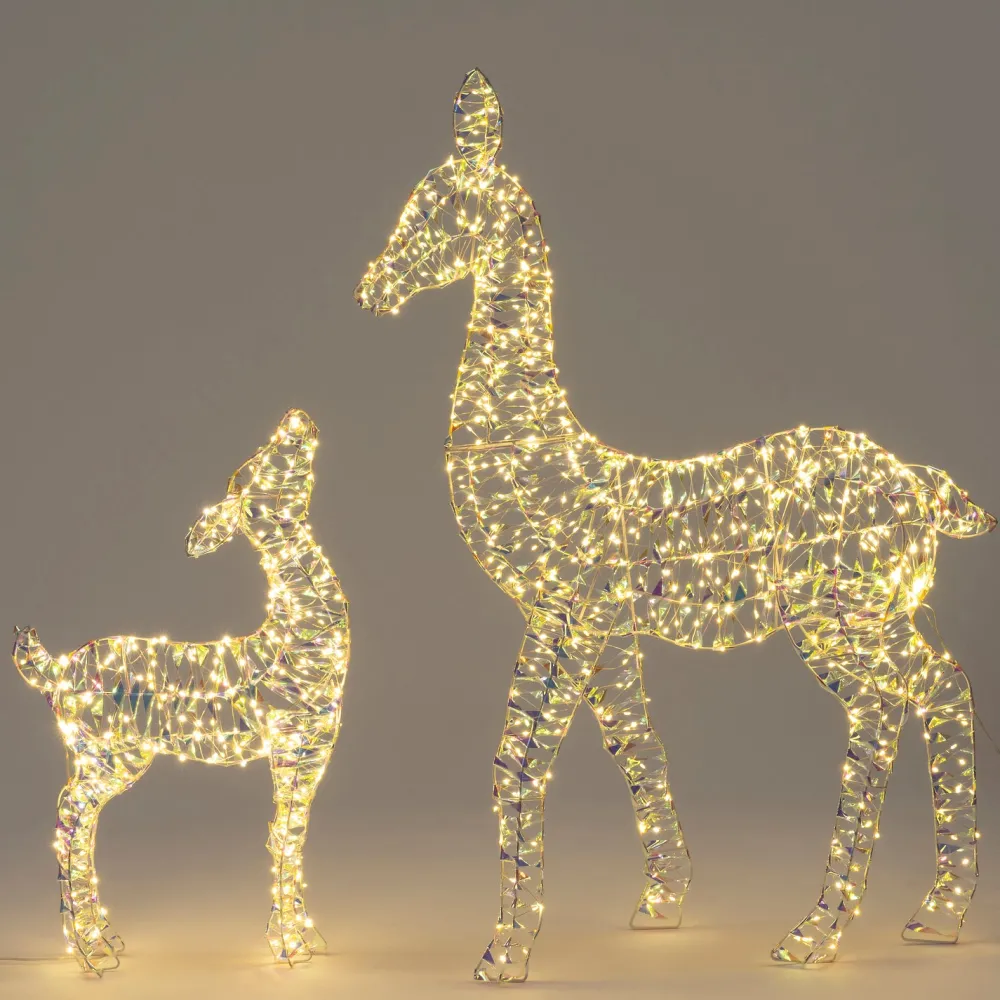 Die Größe des Rentiers beträgt 72 x 10 x 100 cm. Die Figur besteht aus transparentem Kunststoff und wird mit 720 warmweißen Lichtern über einen Adapteranschluss wunderschön beleuchtet (IP44 – d.h. spritzwassergeschützt). Du musst nur einmal den integrierten Timer einstellen und dann ist das Licht immer dann an, wenn du es willst und du musst dich nicht mehr darum kümmern. Hast du schon an ein schönes Plätzchen gedacht, um deinem Garten etwas mehr Magie zu verleihen?
