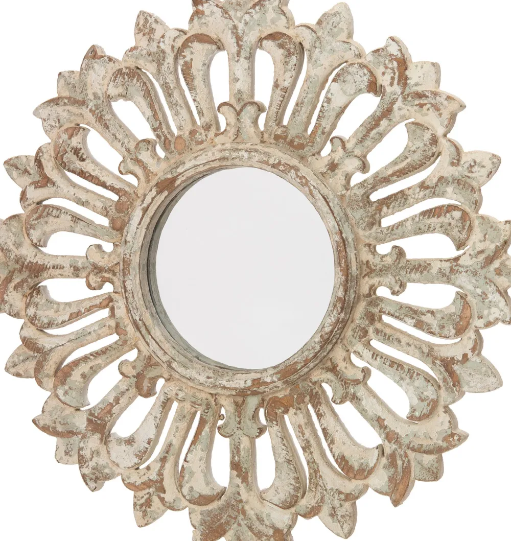 Der richtige Spiegel kann sehr viel für das Ambiente im Garten tun. Dieser runde von Intratuin hat einen mintfarbenen Schimmer, der den Spiegel besonders hübsch aussehen lässt. Die Gartendekoration ist aus MDF und Glas gefertigt und sieht auf positive Weise alt aus. Der Durchmesser dieses Spiegels ist 60 cm.