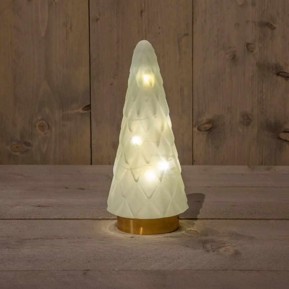 Weihnachten ist das Fest der Lichter. In der dunkelsten Jahreszeit des Jahres sorgt die Weihnachtsbeleuchtung für das gewisse Extra an Atmosphäre in Haus und Garten. Mach es dir gemütlich mit dieser Tischlampe. Die Lampe hat eine Höhe von 24,5 cm und enthält 10 LED-Lämpchen, die warmweißes Licht ausstrahlen das durch die Färbung des Glases und dessen Reliefs schöne Lichteffekte erzeugt.