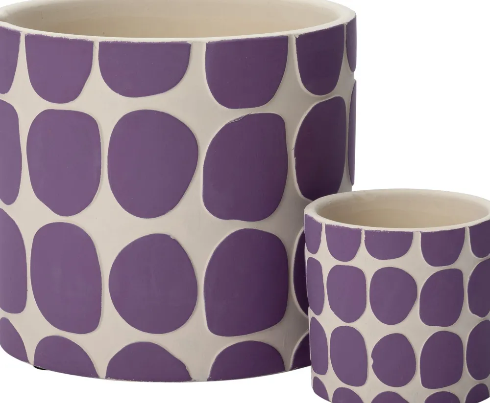 Verschönere dein ganzes Wohnzimmer mit diesem schönen Blumentopf Idar aus der Intratuin-Kollektion. Der Blumentopf Idar hat eine tolle lila Farbe und ist damit ein echter Blickfang! Der Blumentopf hat eine matte Oberfläche mit einem organischen Muster.