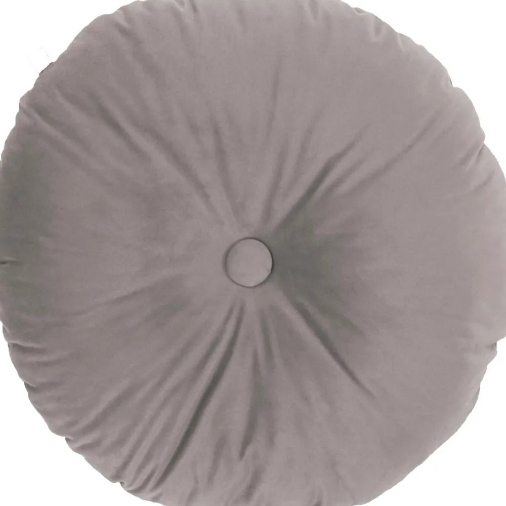 Das Kissen ist einfarbig grau, hat eine runde Form mit einem Stoffknopf in der Mitte und ist aus Baumwolle gefertigt. Das macht es zu einem dezenten Basiskissen, das mit auffälligeren Exemplaren ergänzt werden kann. Oder passt es gerade deshalb so gut, weil deine Couch ein auffälliges Muster hat, zu dem nur ein schlichtes Kissen passt?