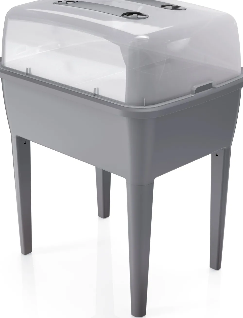 Dieser Hochbeet Anzuchtkasten von Intratuin ist ein 4-in-1-Set. Ideal, um dein Gemüse oder deine Kräuter im Haus oder im Freien anzubauen! Das Zimmergewächshaus hat ein Fassungsvermögen von 83 Litern und enthält einen Deckel mit Belüftungslöchern, mit verstellbaren Verschlüssen (Insektenschutz), einen Blumenkasten und der Möglichkeit halbhoch oder hoch zu stehen.