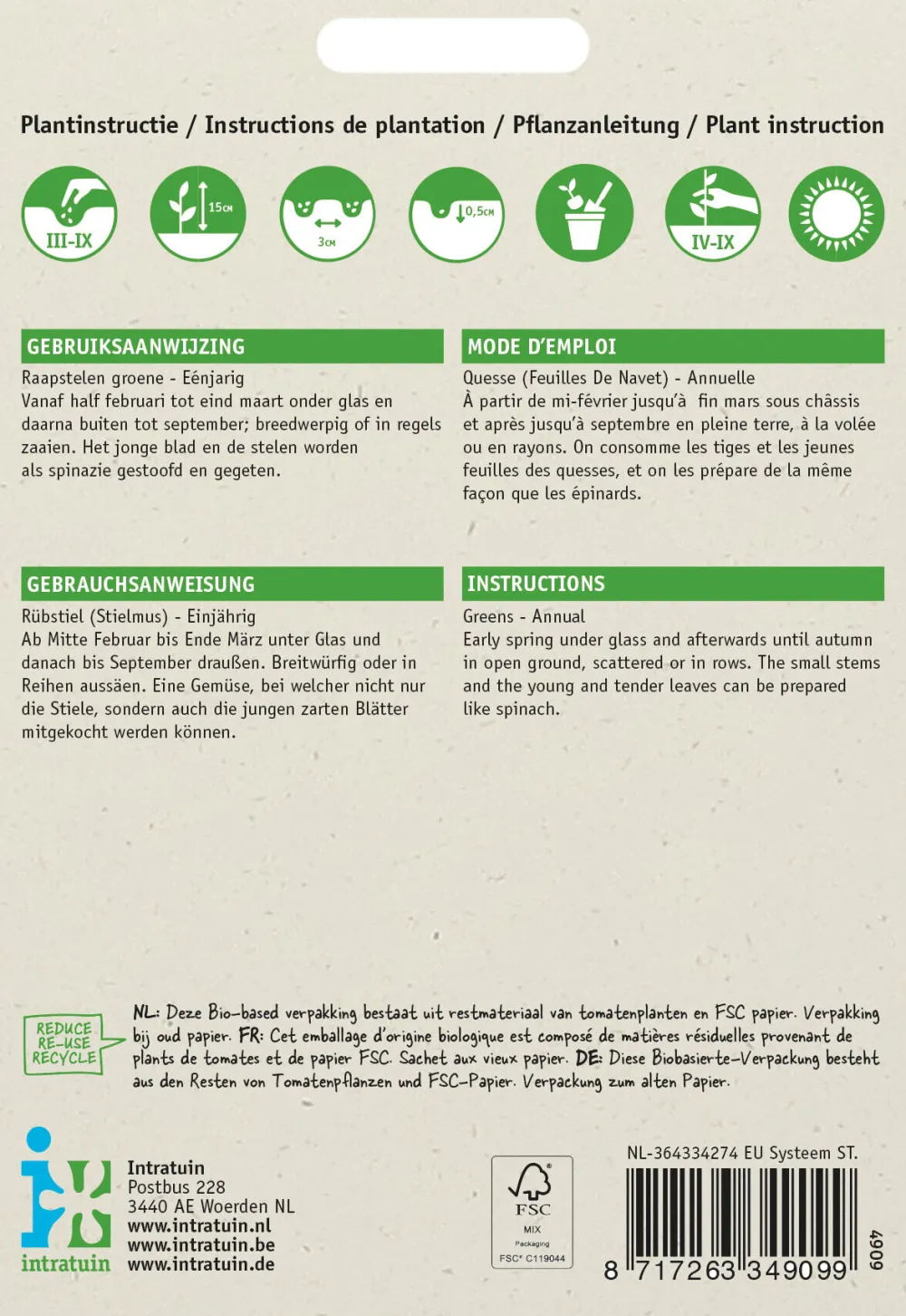 | Besonderheiten | Rübstiel wird früh in der Saison gesät und geerntet. |