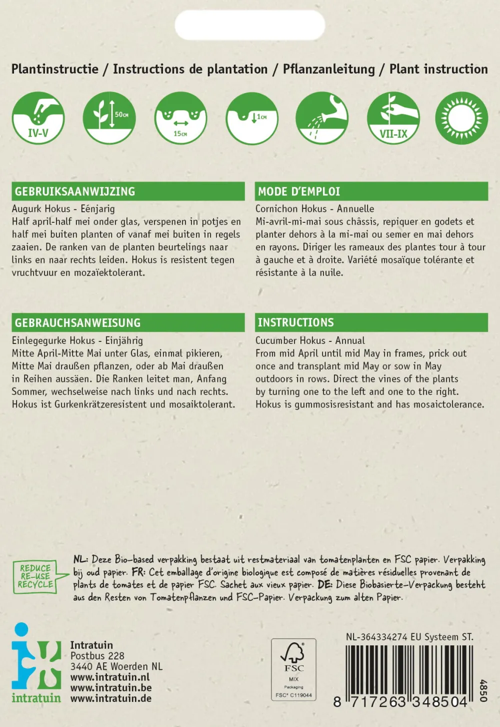 Gurke ‚Hokus‘ ist eine bereits länger existierende Sorte, die kräftig ist und einen guten Ertrag liefert. Die weichen und schmackhaften Früchte können sowohl klein als auch etwas größer geerntet werden. Sie eignen sich als kleine Snackgurken oder zum Einlegen. Diese Einlegegurken benötigen einen fruchtbaren Boden zum Wachsen und ausreichend Feuchtigkeit, denn sie vertragen Trockenheit nicht gut. Wähle einen sonnigen Standort und halte den Boden stets leicht feucht. Um Bodenfläche zu sparen, kannst du die Pflanze an Draht oder Gitter entlang führen, sodass sie in die Höhe klettern kannEin weiterer Vorteil dabei ist, dass die Gurken sauber bleiben und einfach zu pflücken sind.